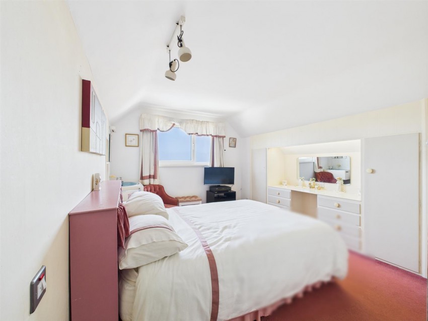 Large bedroom with window to side, benefiting from outstanding sea views., fitted wardrobes, eaves storage.